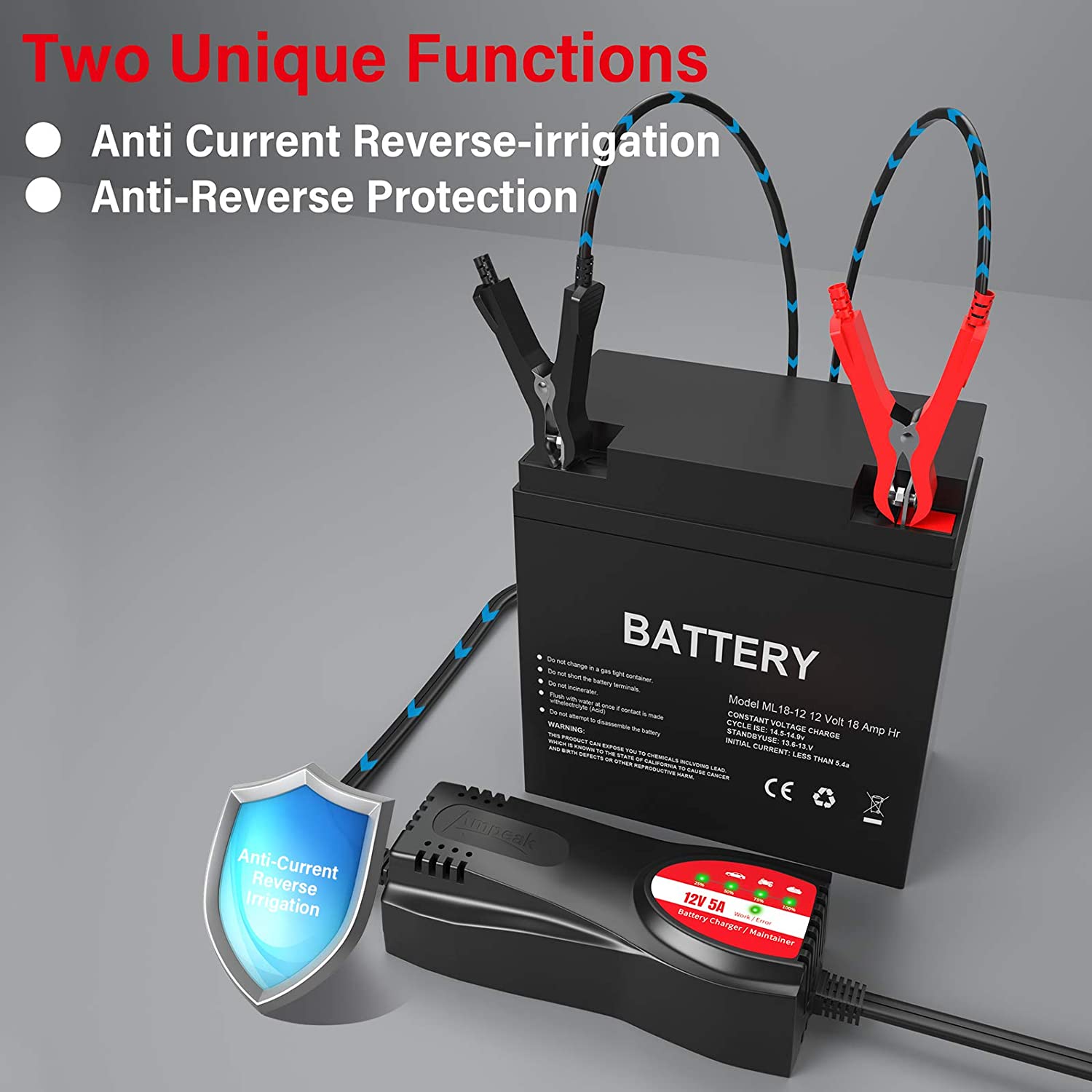 Ampeak Battery Charger Automotive 5a 12v Auto Trickle Charger Maintainer For Cars Motorcycles Trucks Boats Lawn Mower Walmart Com